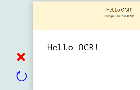 OCRAD is GNU C library that was compiled to Javascript using Emenscripten. This library is amazing for frontend/client side OCR but if you try several differing fonts (the blue round arrow) you will notice that the text extraction is not as desirable.